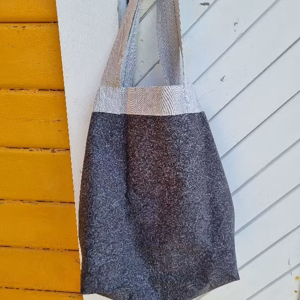 Romslig handlenett sydd i 100% bomullsstoff av quiltekvalitet og canvas innveldig.  Handlenettet er dobbelt, og har ikke innvendige lommer.