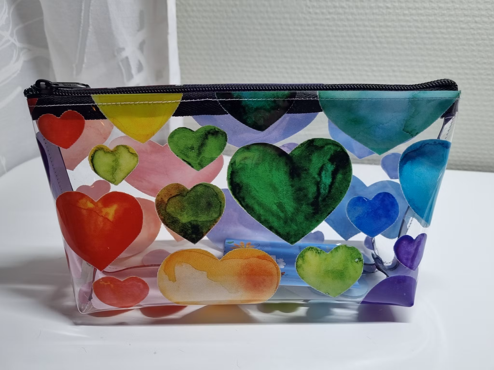 Mappe sydd i dekorplast. Solid glidelås i toppen. Egner seg fint til å ha badetøy i, leker på stranda, pennal o.l.