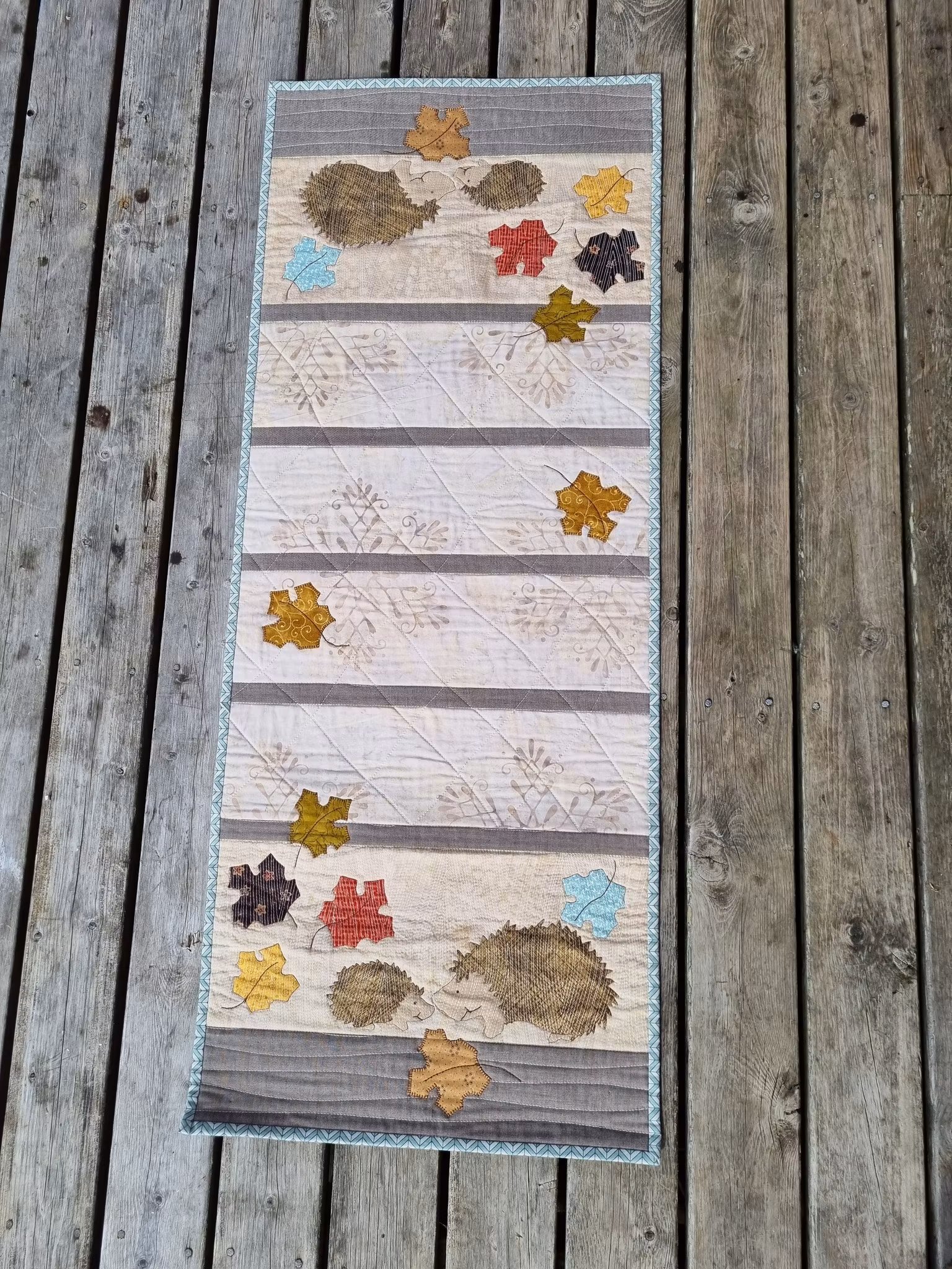 Løper med applikerte pinnsvin kr 900 Løper sydd i quiltestoff i bomull, både forside og bakside. Vattert og quiltet.Mål: 42x107 cm I lager. Legg i handlekurv Lagerbalanse: 1 Artikkelnummer: 135 Del Informasjon Løper sydd i quiltestoff i bomull, både forside og bakside. Vattert og quiltet.Mål: 42x107 cm