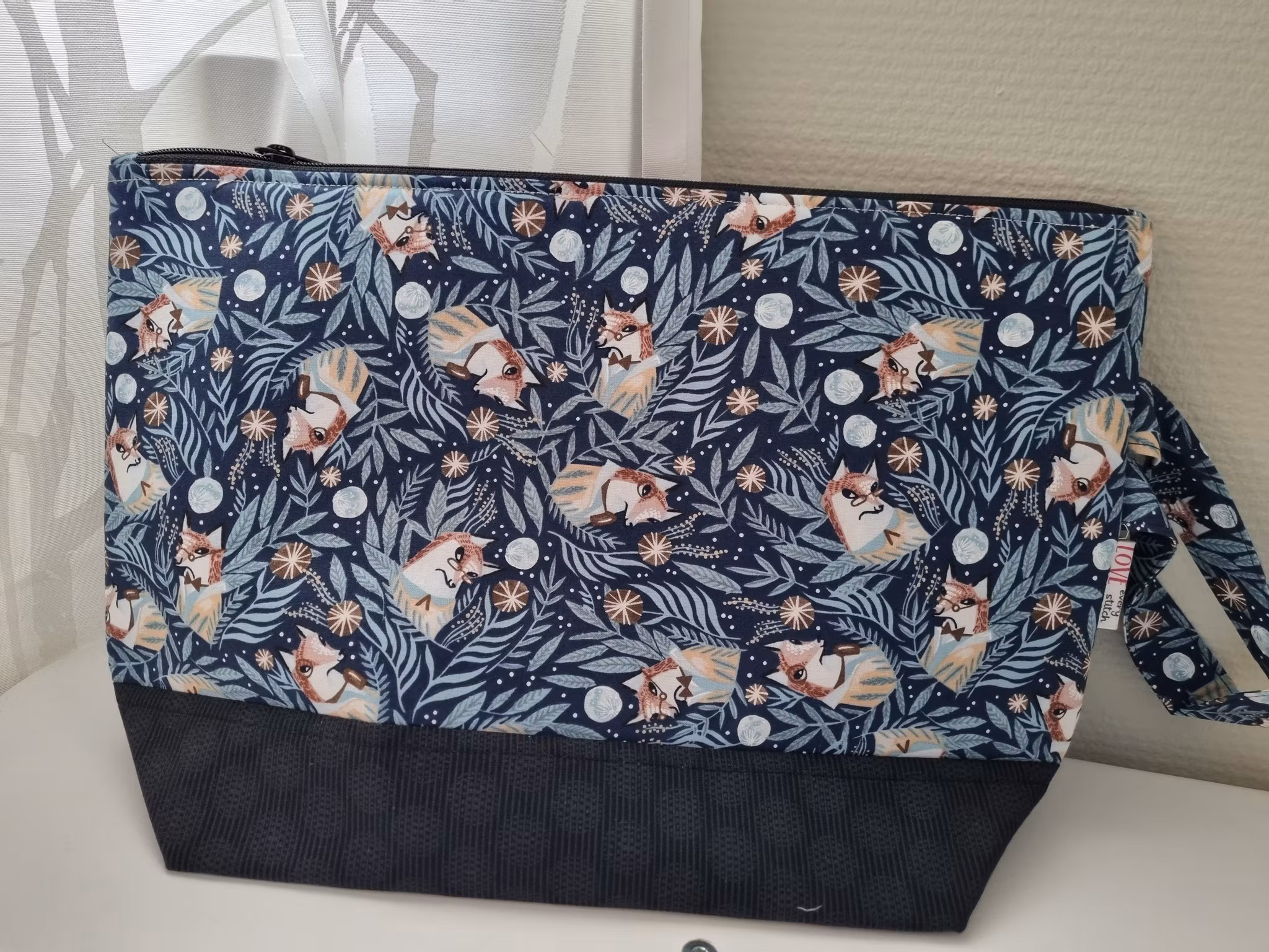 Romslig prosjektveske sydd i 100% bomullsstoff av quiltekvalitet. Glidelås fra byAnnie.