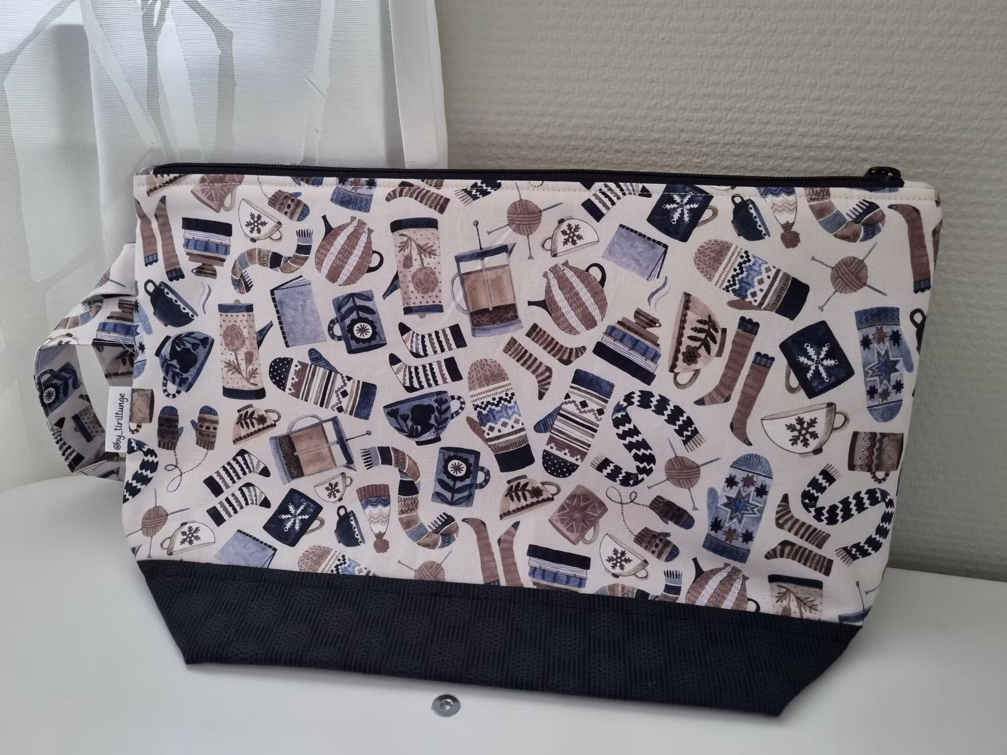 Romslig prosjektveske sydd i 100% bomullsstoff av quiltekvalitet.  Glidelås fra byAnnie.